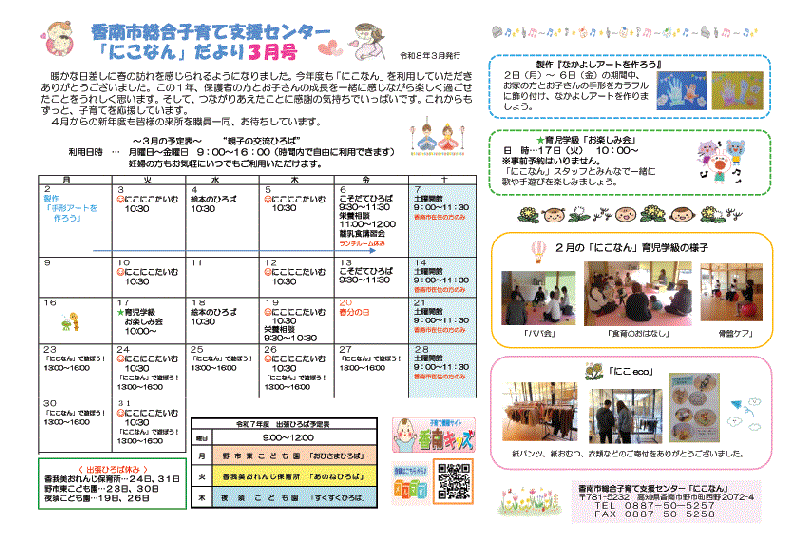 香南市総合子育て支援センター「にこなん」だより令和8年3月号 (PDFファイル: 513.9KB)