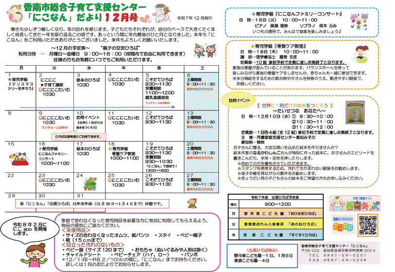 香南市総合子育て支援センター「にこなん」からのお知らせ