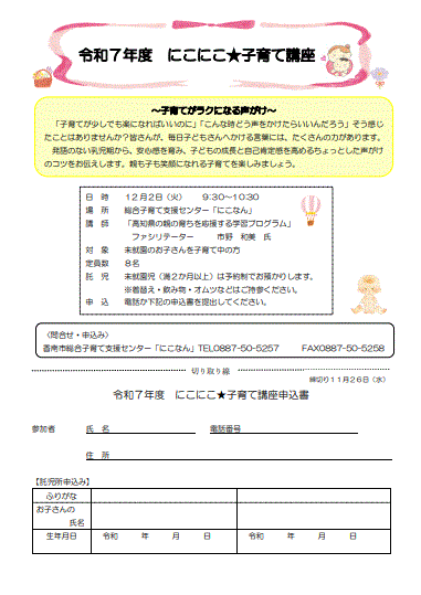 香南市総合子育て支援センター「にこなん」令和7年度 にこにこ子育て講座 (PDFファイル: 333.2KB)