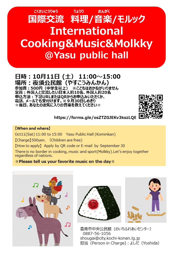 10/11土 国際交流 料理/音楽/モルック 参加者募集